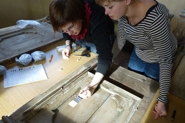 Unsere Einsatzstellen im Bereich Restaurierung umfassen alle Gewerke: Holz, Metall, Papier, Textilien, Stein, Stuck und Wand. Die Konservierung und Restaurierung der verschiedenen Objekte umfasst nicht nur die praktische Arbeit am Objekt, sei es auf der Baustelle oder in der Werkstatt, sondern auch die theoretische Auseinandersetzung mit diesem.