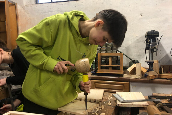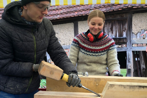 Bei der Fachwerksanierung kannst Du Einblicke in unterschiedliche Gewerke erhalten: dazu zählen u.a. Lehmbau, Zimmern, Maurern und Malern.